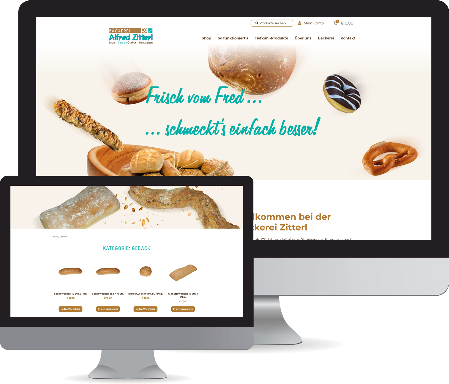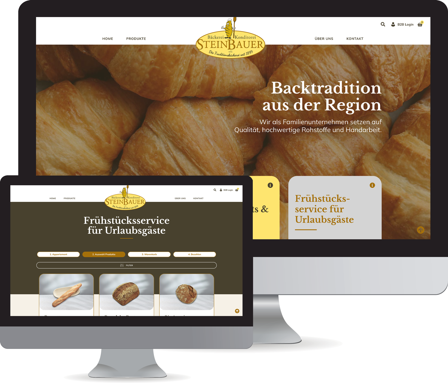 Unser Online Shop ist eine E-Commerce-Lösung explizit für Bäckereibetriebe, die ihre Produkte online verkaufen. Ein Endkunde kann von zu Hause bequem bestellen und die Ware nach Hause geliefert bekommen. B2B-Bestellungen können online abgewickelt werden. Oder Appartement-Gäste bestellen Ihr Frühstück über den Webshop.
